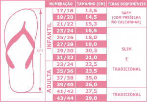 – slim, indicada para o público feminino, com numeração do 23/24 a 43/44;