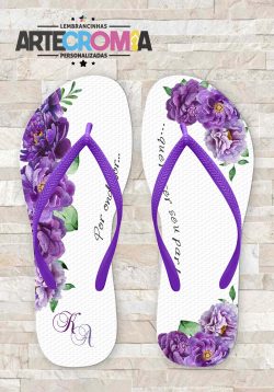 Chinelo personalizado casamento com flores lilás e roxa – MDL 213