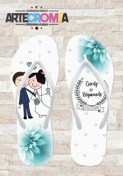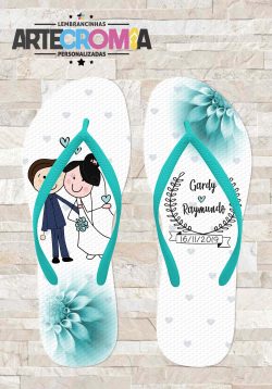 Chinelo personalizado de casamento Flores Tiffany e Noivinhos – MDL 128