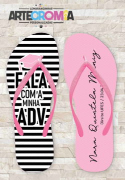 Chinelo formatura de direito com fundo rosa e listras pretas – MDL 075
