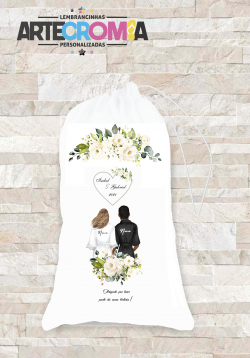 Saquinho Surpresa personalizado com flores rosas Madrinha MDL 370