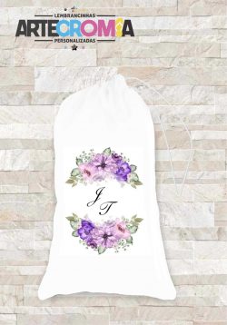 Saquinho personalizado com flores rosas, lilás e roxa – MDL 312