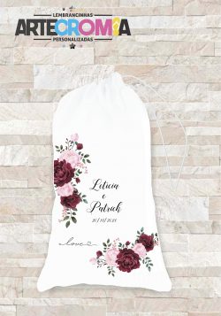 Saquinho Surpresa personalizado com flores marsala MDL 250