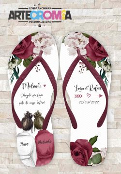 Chinelo Personalizado para Noiva / Bride floral Marsala – MDL 344