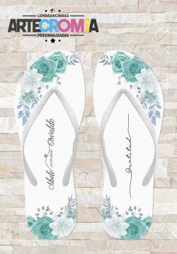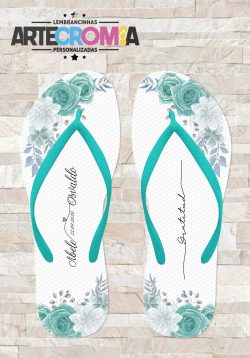 Chinelo personalizado casamento com flores azul turquesa – MDL 174