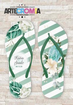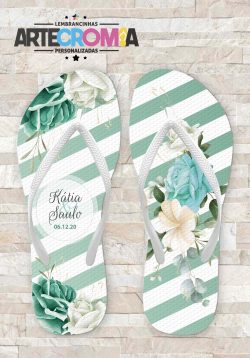 Chinelo personalizado casamento com flores verde, branca e azul – MDL 216