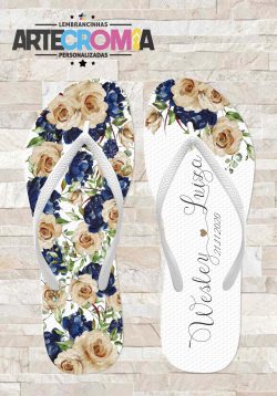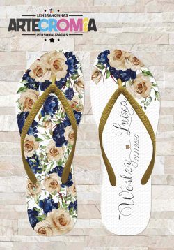 Chinelo personalizado casamento flores dourada e azul – MDL 176