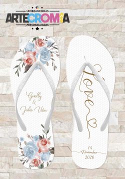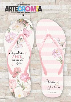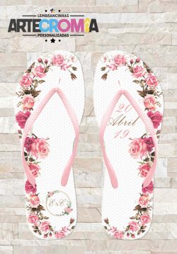 Chinelo personalizado casamento com flores tons de rosa – MDL 197