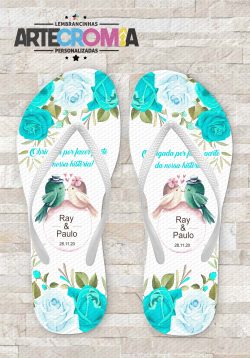 Chinelo personalizado casamento com flores verde azul tiffany e birds passarinhos – MDL 247