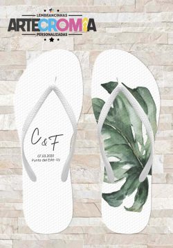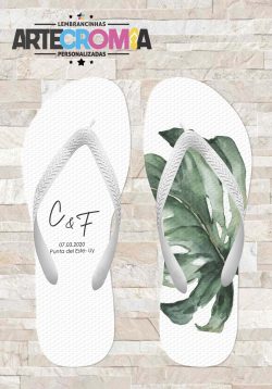 Chinelo personalizado casamento com folha verde costela de adão – MDL 175