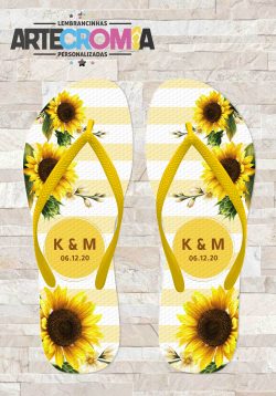 Chinelo personalizado casamento com girassol e listras – MDL 219