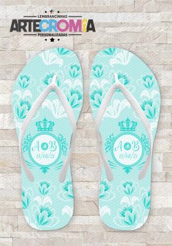 Chinelo personalizado casamento monograma e flores azul verde tiffany – MDL 359