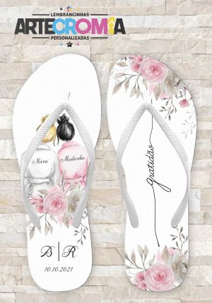 Chinelo de casamento noiva e madrinha com flores rosas – MDL 117