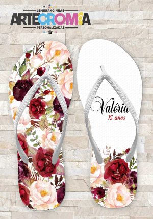 Chinelo Festa de 15 anos Floral Marsala MDL 045