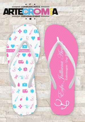 Chinelo formatura de Enfermagem com Icones fundo rosa – MDL 004