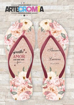 Chinelo para Casamento Flores Rose com efeito Glitter MDL 358