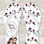 Chinelo personalizado casamento casal noivinhos e flores marsala – MDL 263