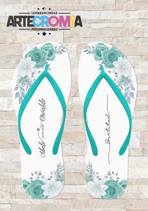 Chinelo personalizado casamento com flores azul turquesa – MDL 174