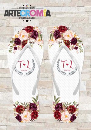 Chinelo personalizado casamento com flores rosa e marsala – MDL 211