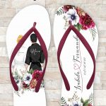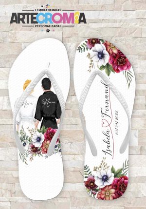 Chinelo personalizado casamento com noiva e noivo e flores branca e marsala – MDL 206