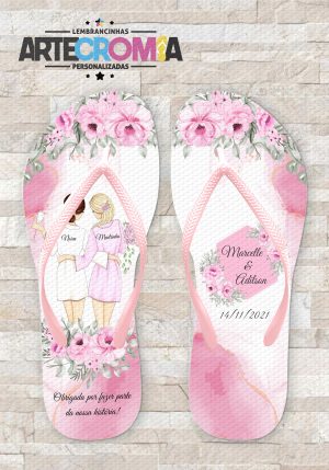 Chinelo personalizado casamento noiva e madrinha com flores rosas – MDL 387