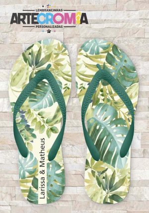 Chinelo personalizado casamento tropical com folhas palmeira – MDL 220