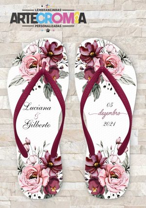 Chinelo Personalizado de Casamento Floral Marsala com Rose MDL 380