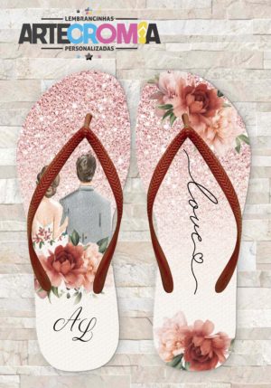 Chinelo de Casamento Floral Terracota com Rose MDL 536