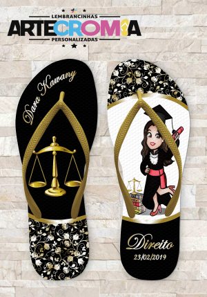 Chinelo Personalizado Formatura de Direito – Flores douradas com Caricatura MDL 017
