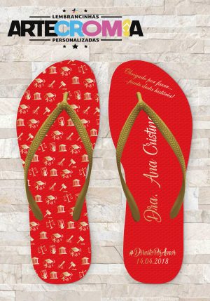 Chinelo Personalizado Formatura de Direito – Fundo Vermelho Icones Dourados MDL 016