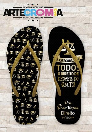 Chinelo Personalizado Formatura de Direito – Icones Dourados Fundo Preto MDL 009