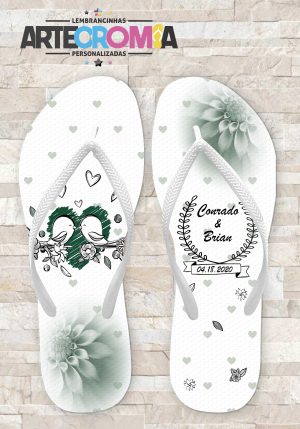 Chinelo Personalizado para Casamento Casal de Pássaros e Flores verdes – MDL 340